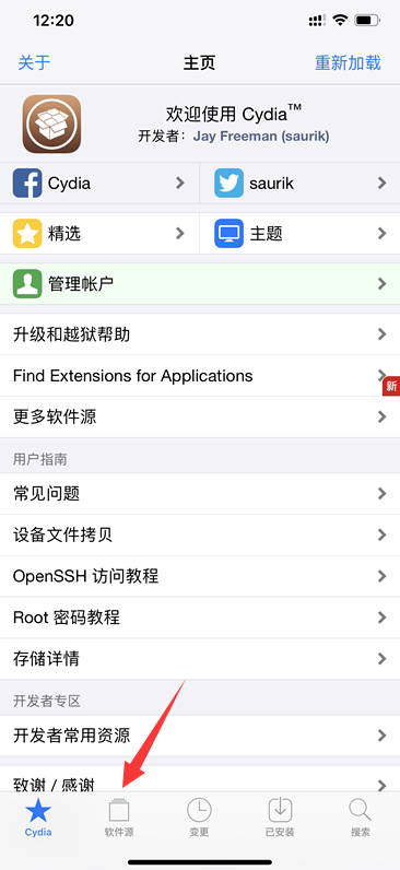 1.手机越狱后,手机桌面会有Cydia软件,将其打开。