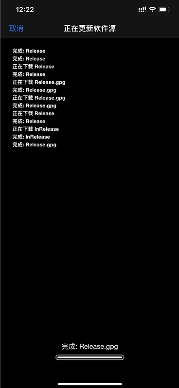 等待软件源更新,如果等待很长时间都没反应,可以点击取消。